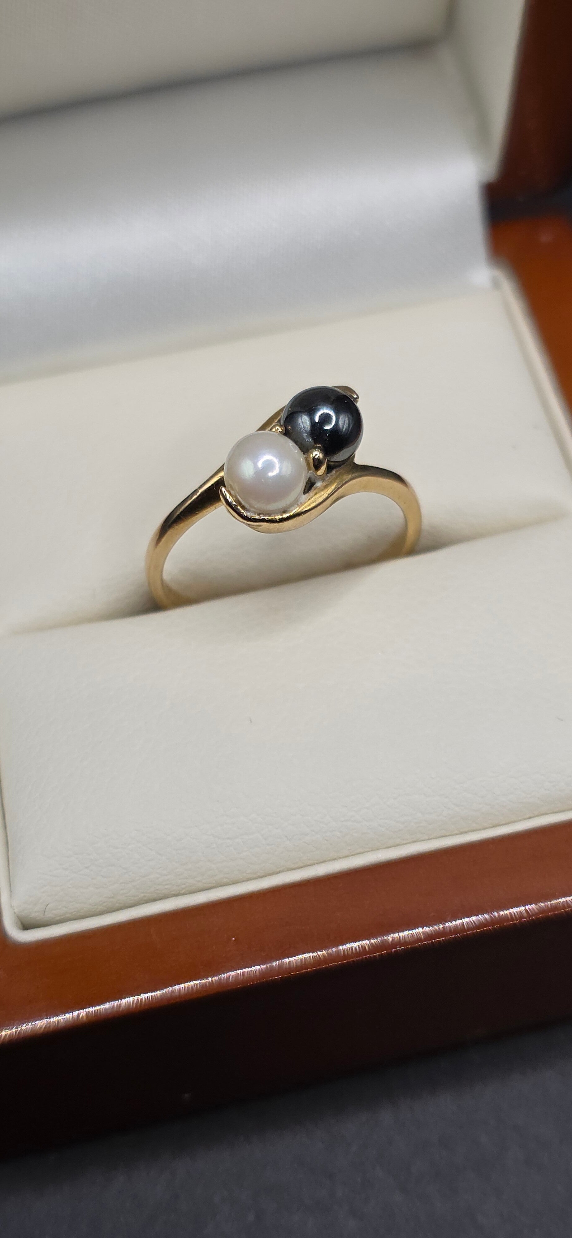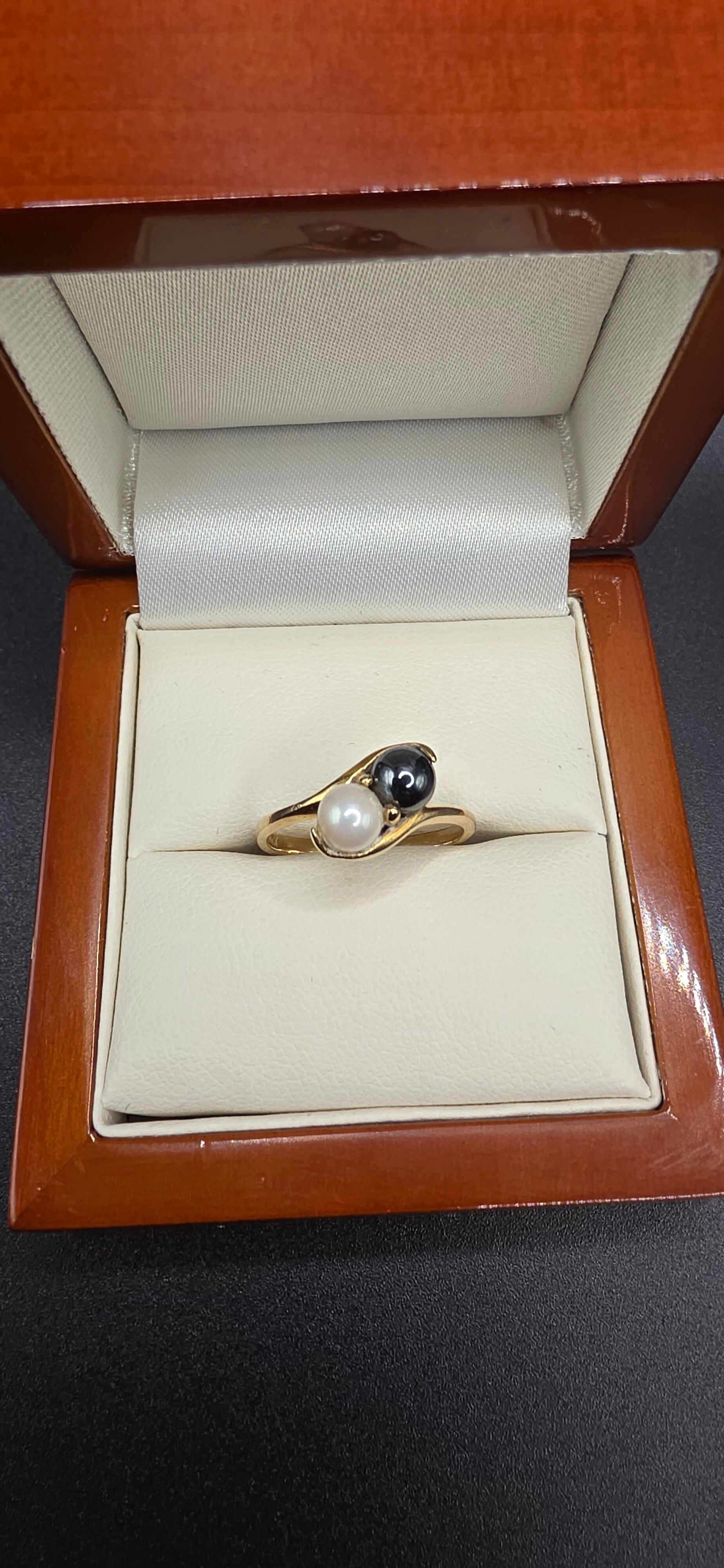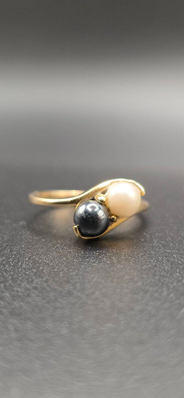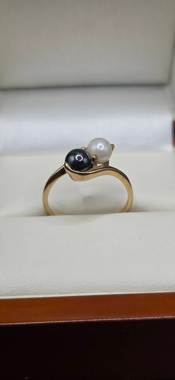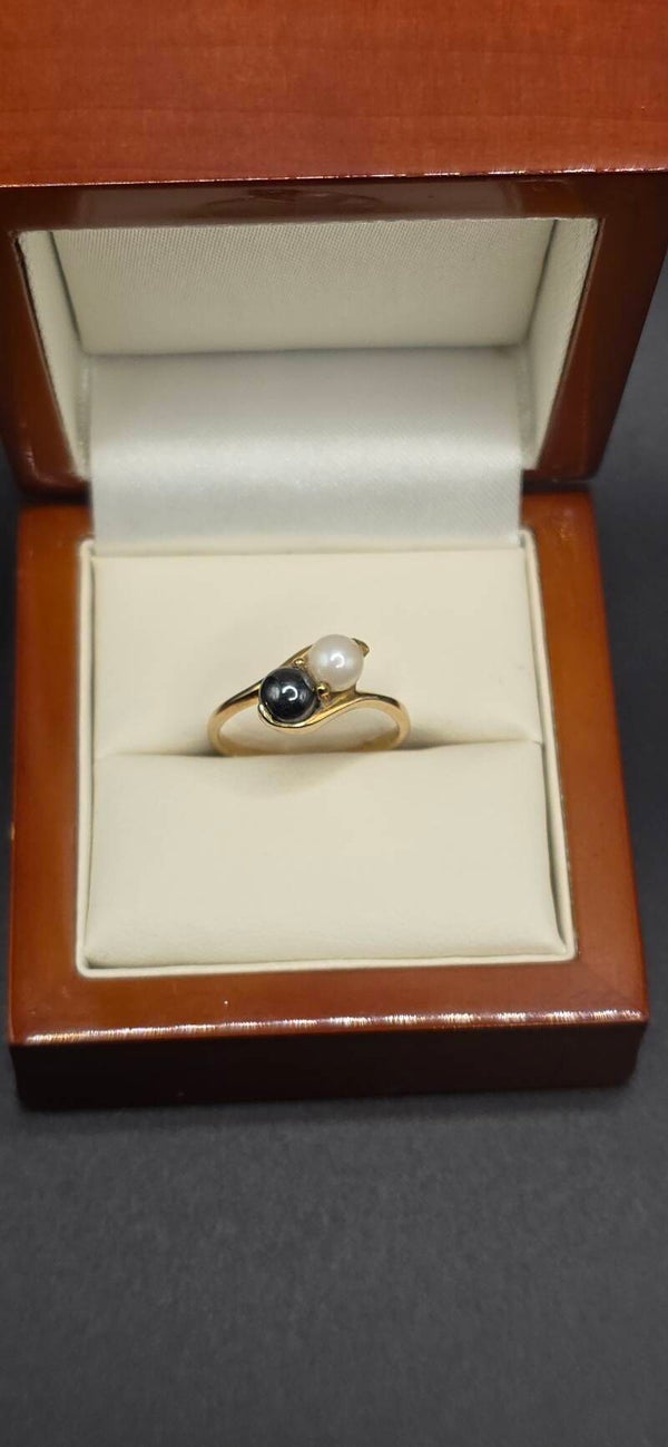 Absolutely stunning natural Black and White Pearl Toi et Moi Ring