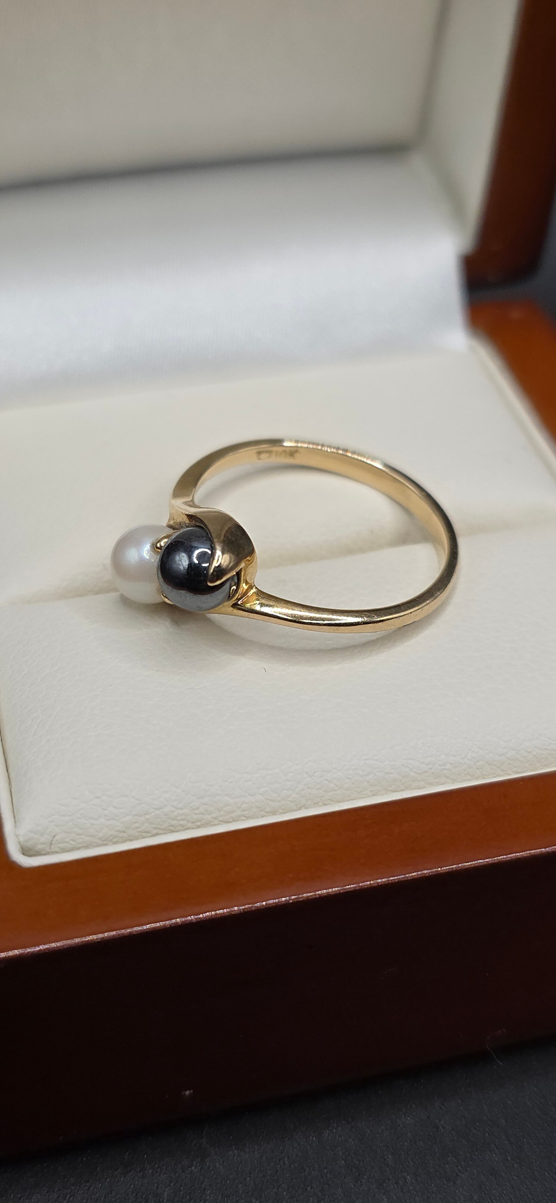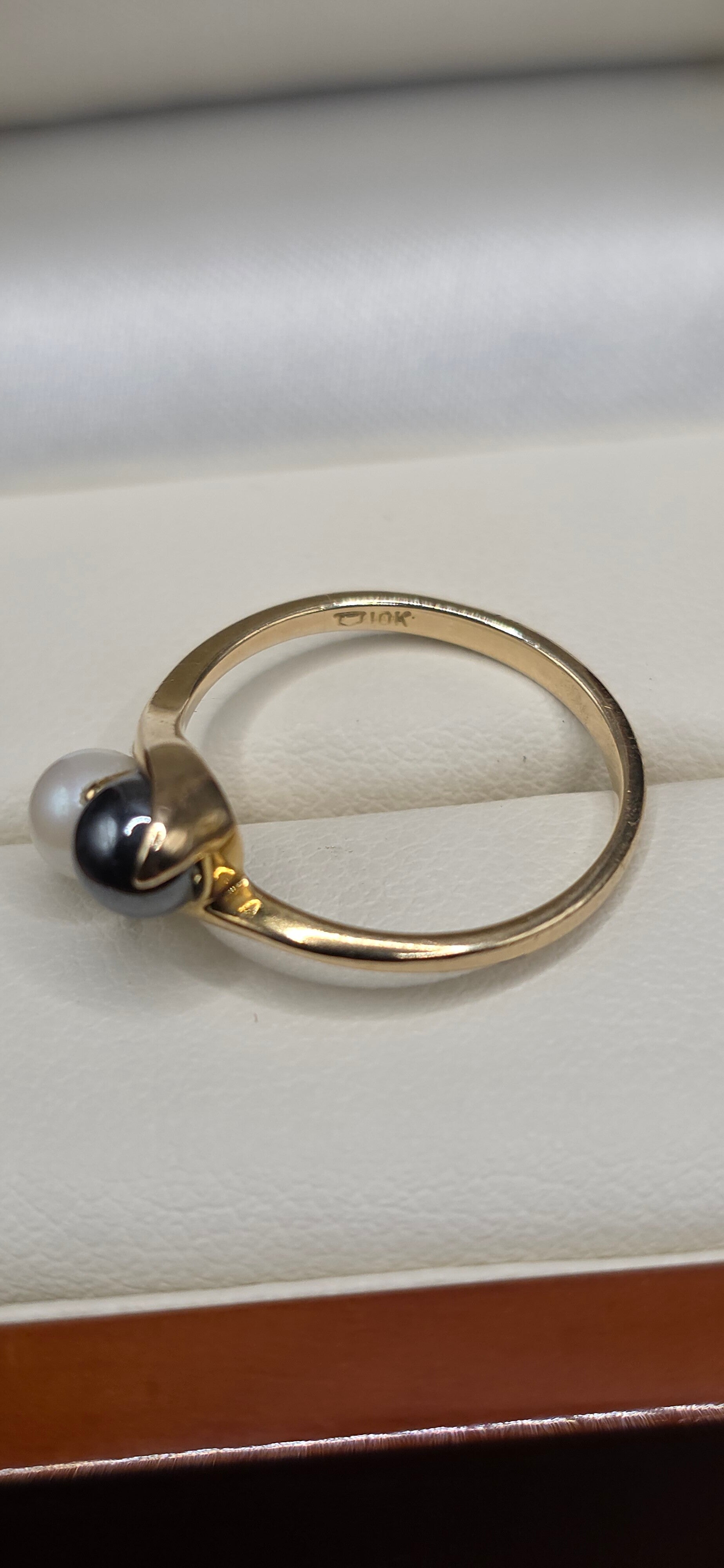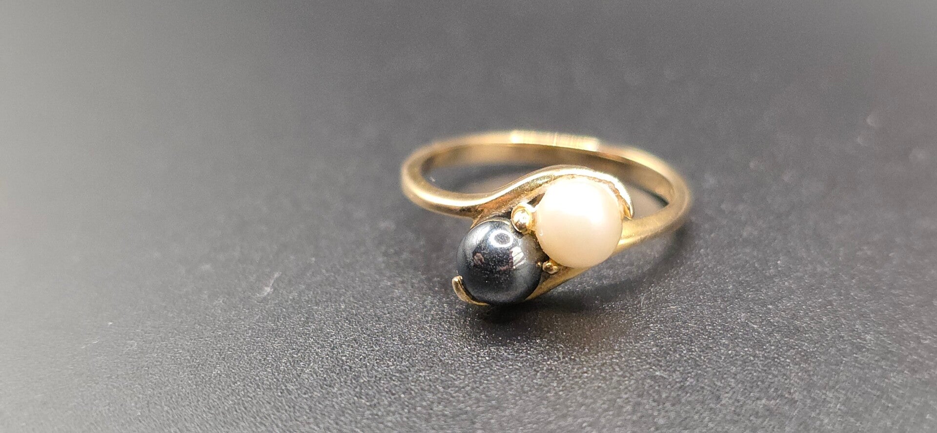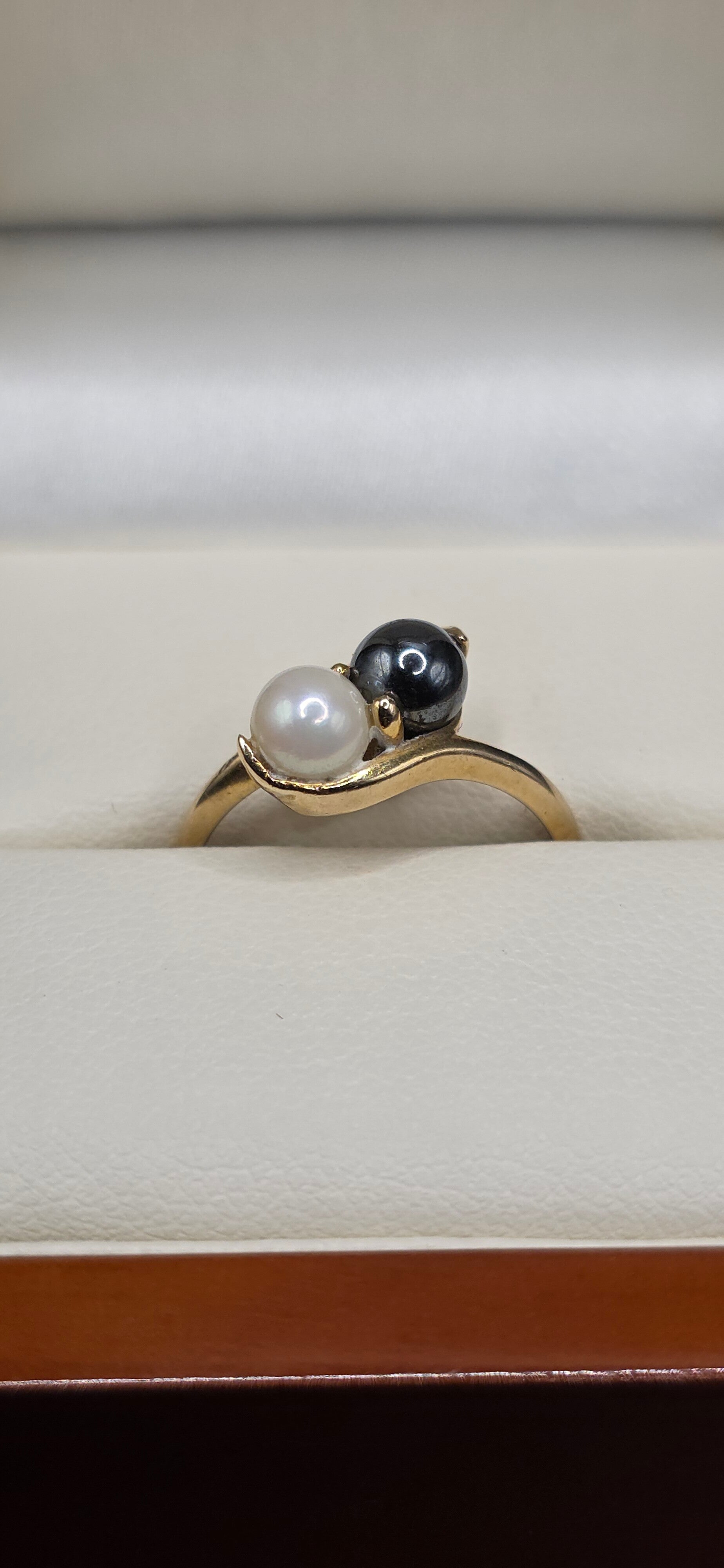 Absolutely stunning natural Black and White Pearl Toi et Moi Ring
