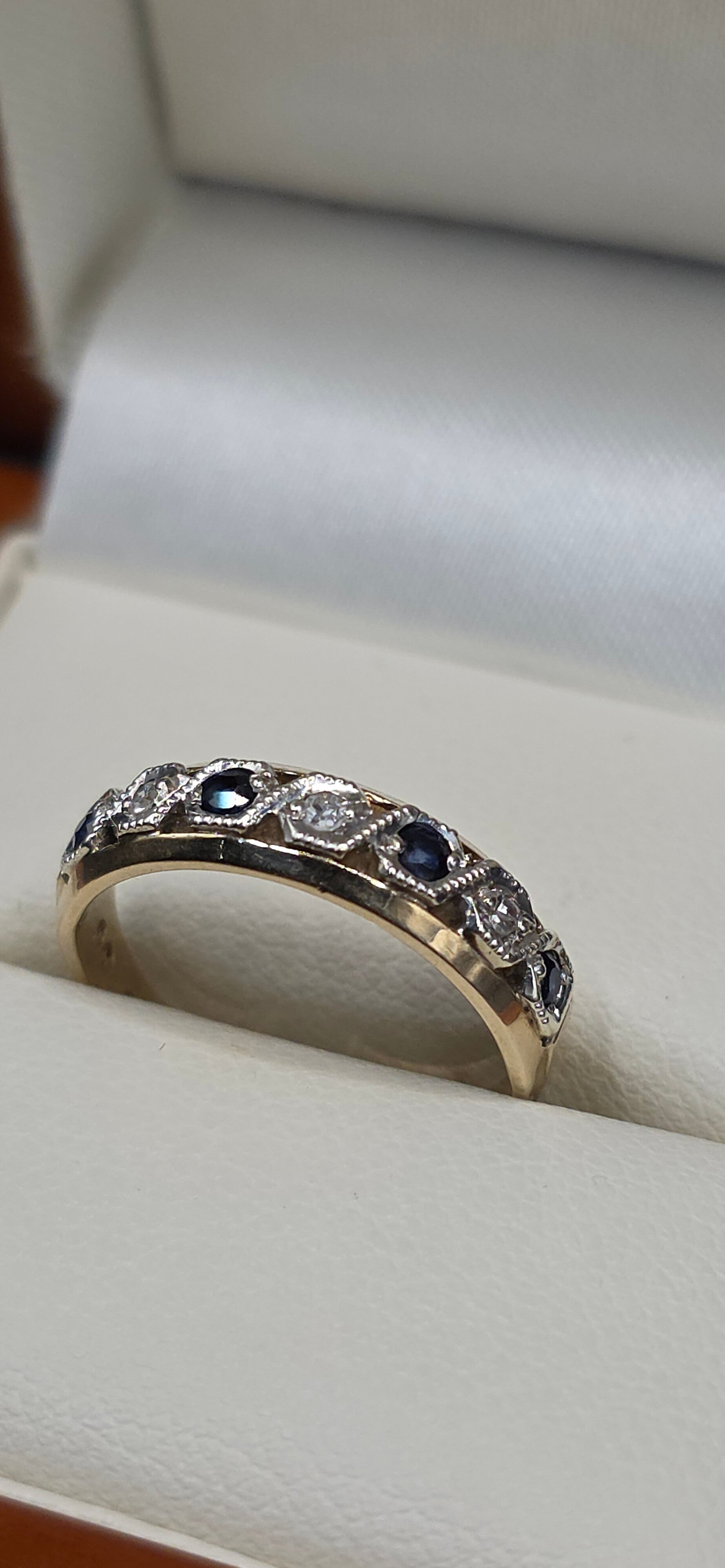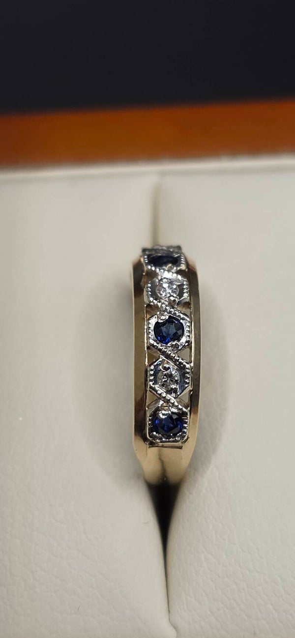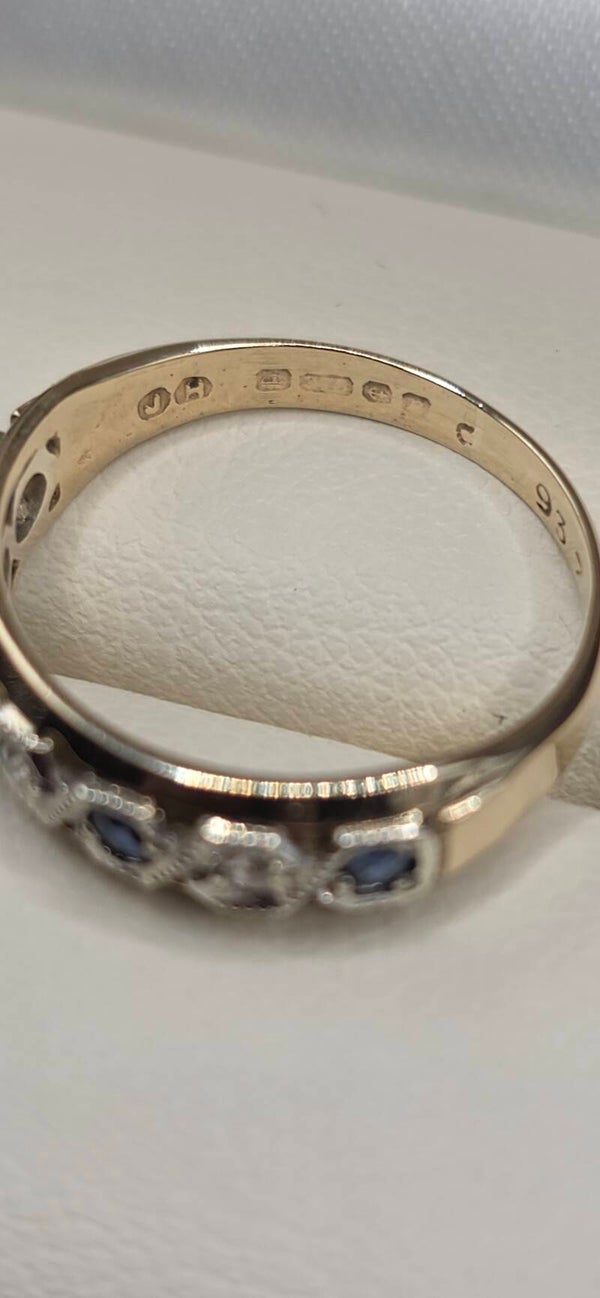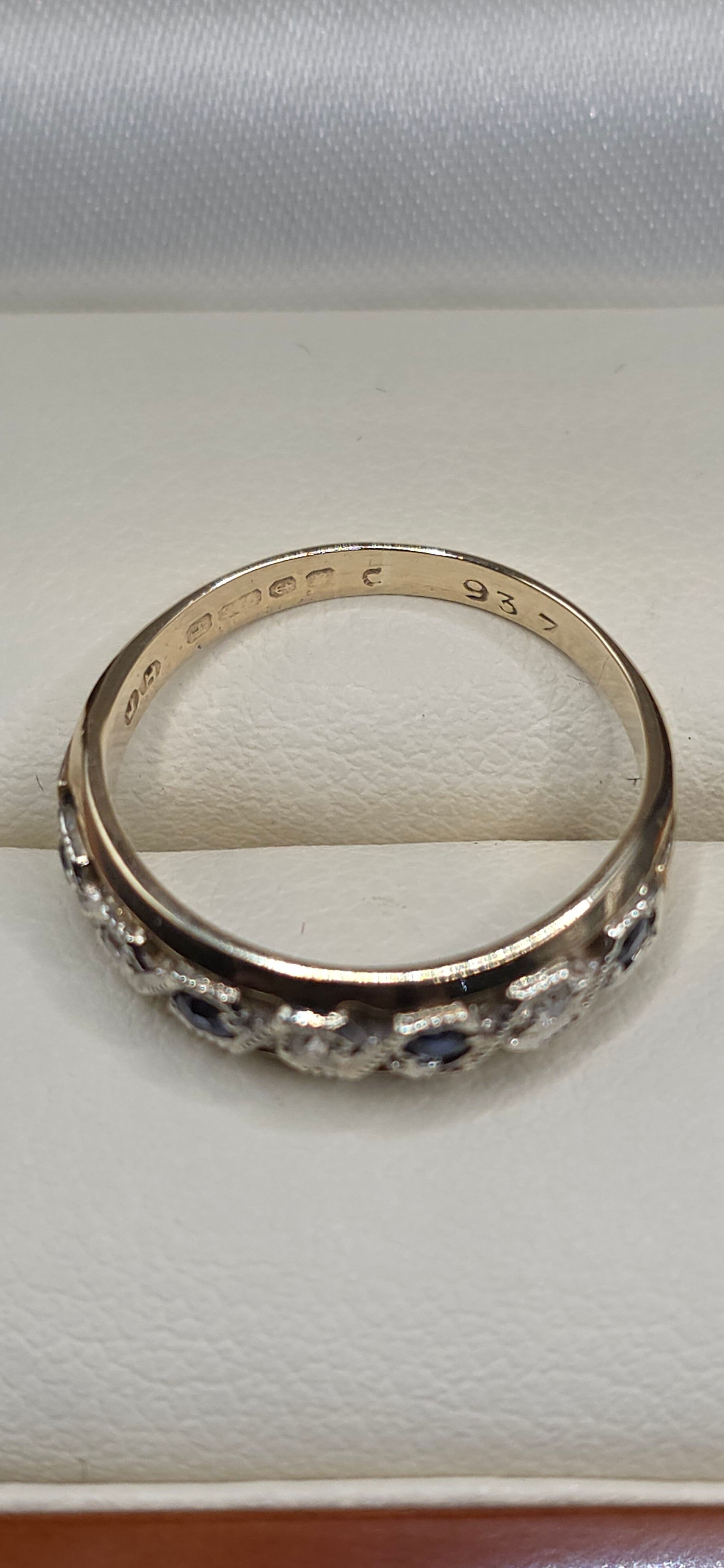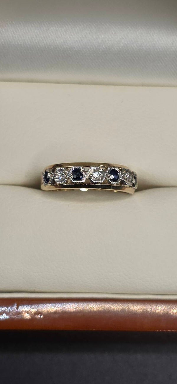 Absolutely stunning Vintage 9ct White and Yellow Gold Sapphire and Diamond Eternity Ring. Size I1/2 to J