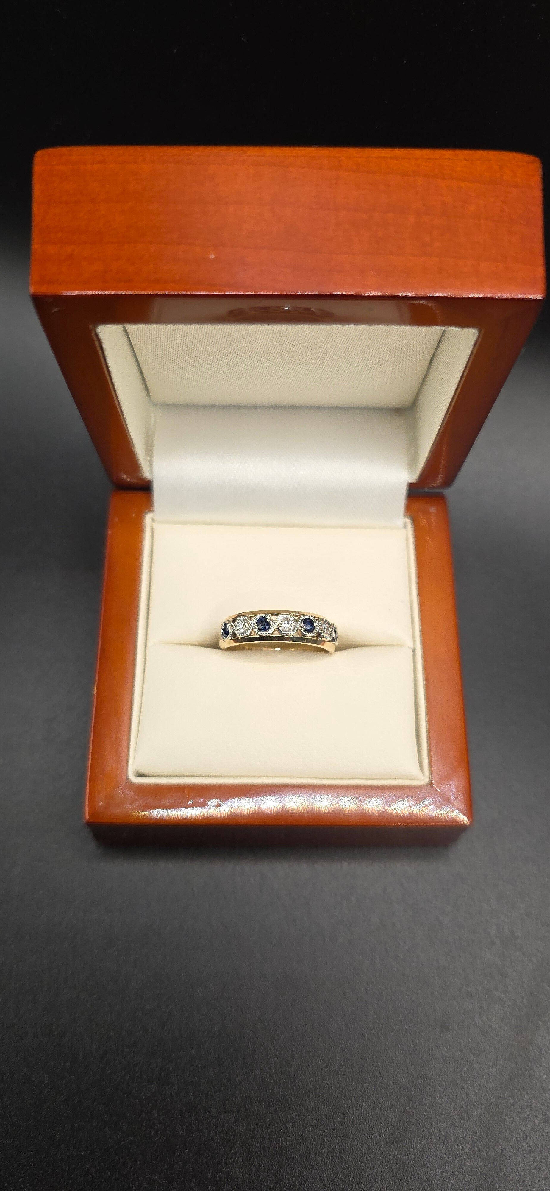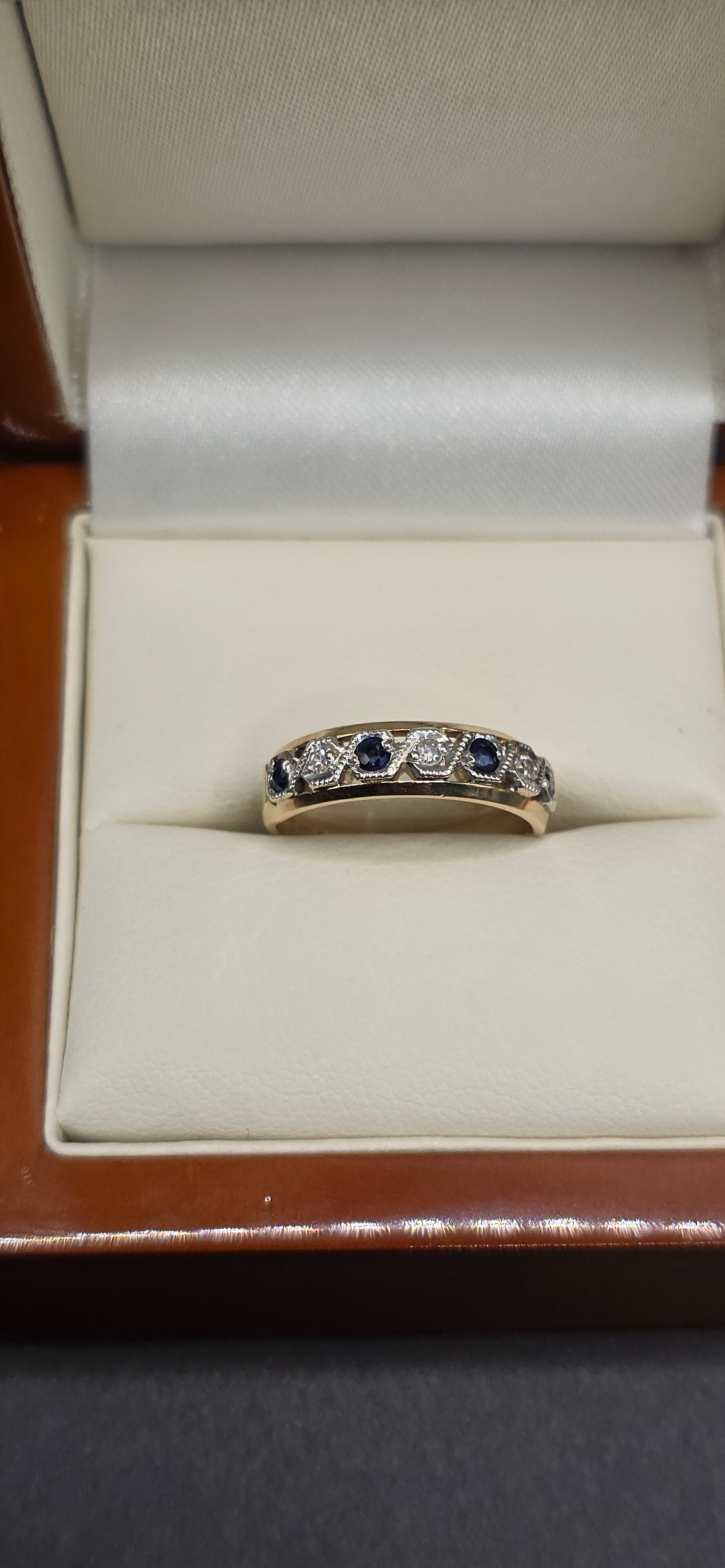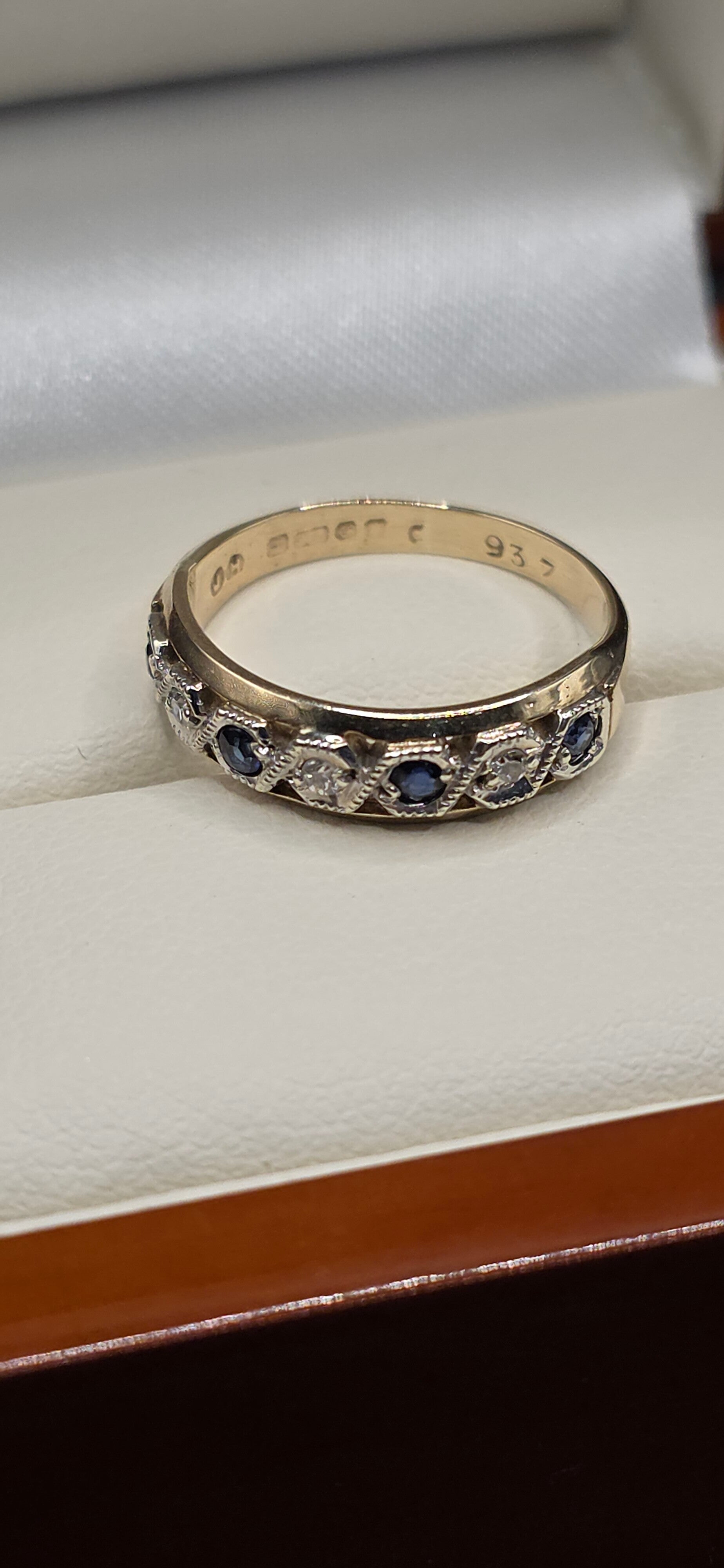Absolutely stunning Vintage 9ct White and Yellow Gold Sapphire and Diamond Eternity Ring. Size I1/2 to J