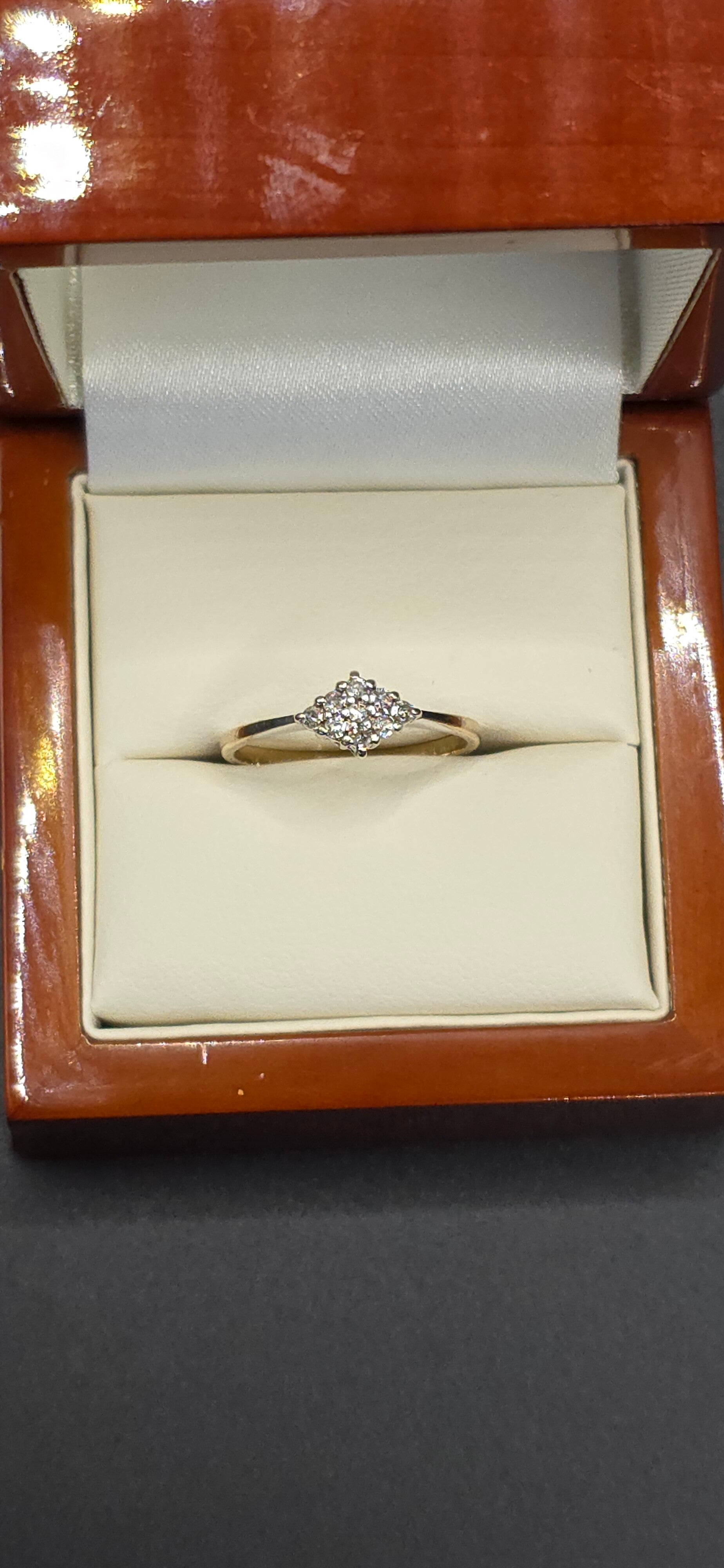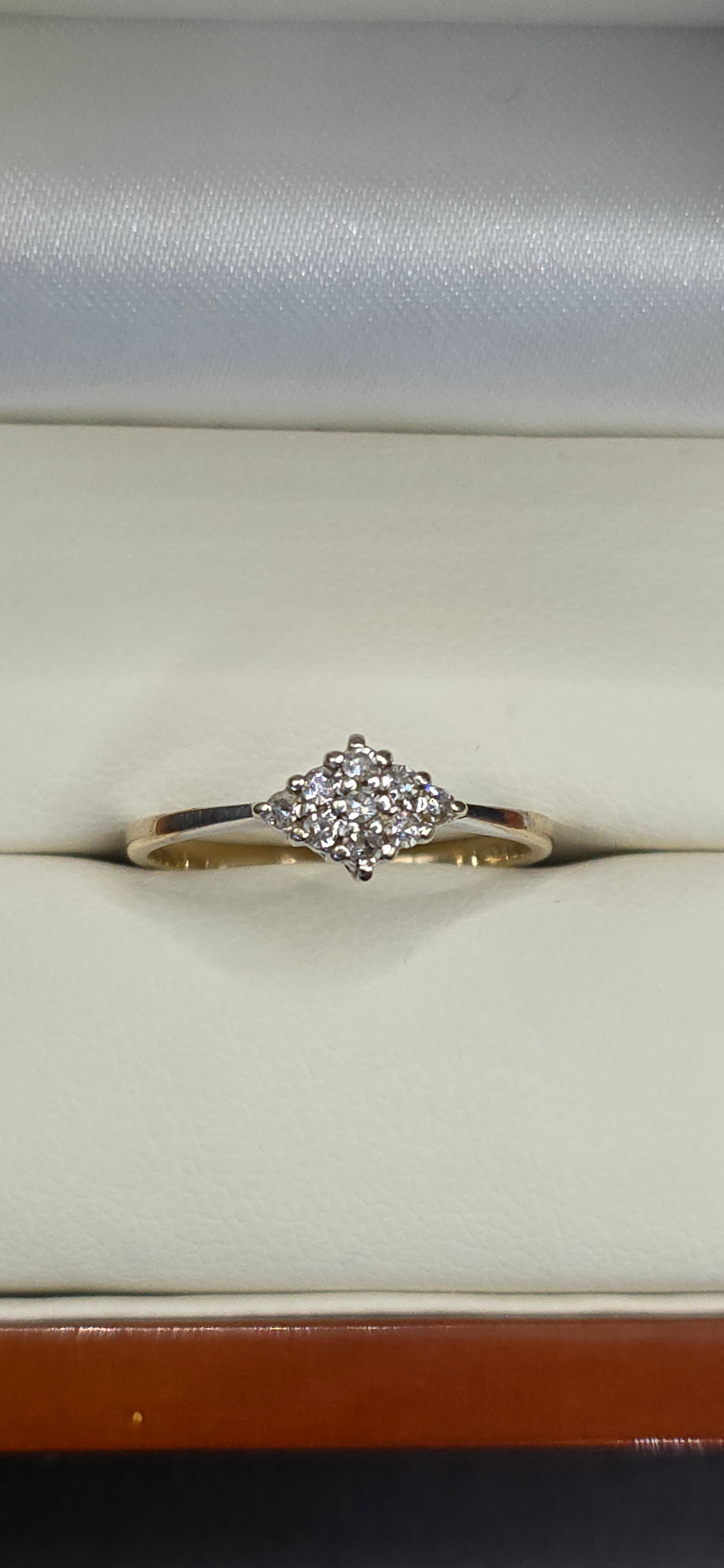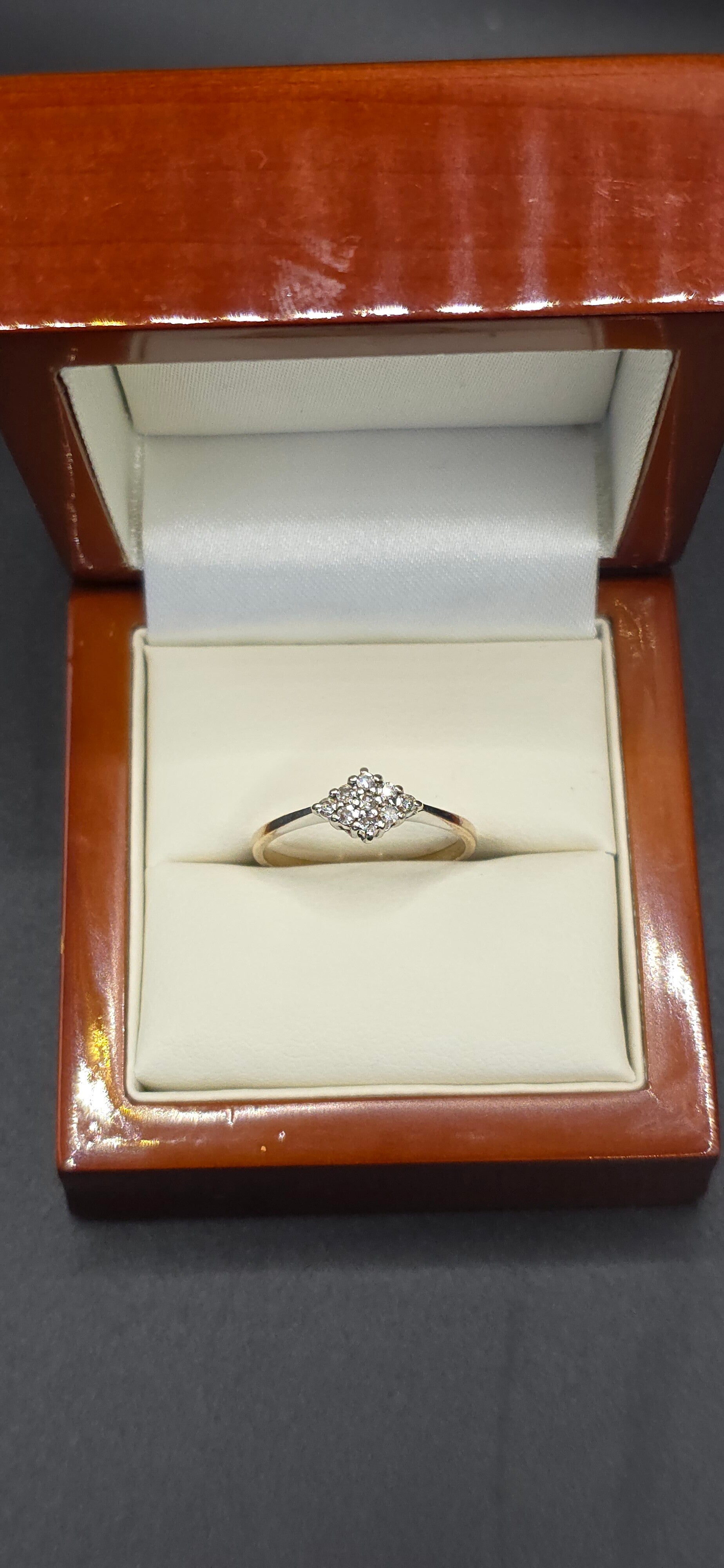 Featuring 9 Brilliant Cut Diamonds Set in an Diamond shape Cluster.