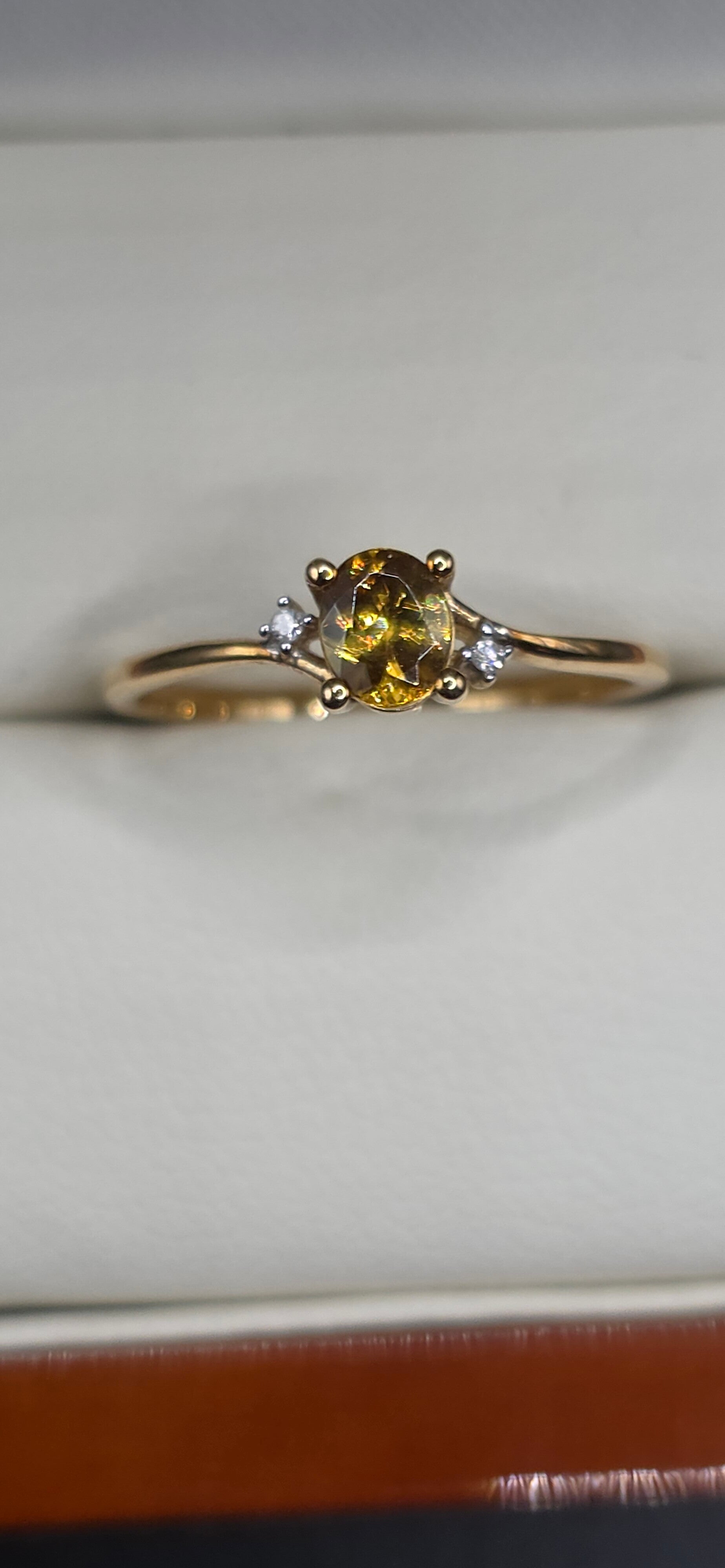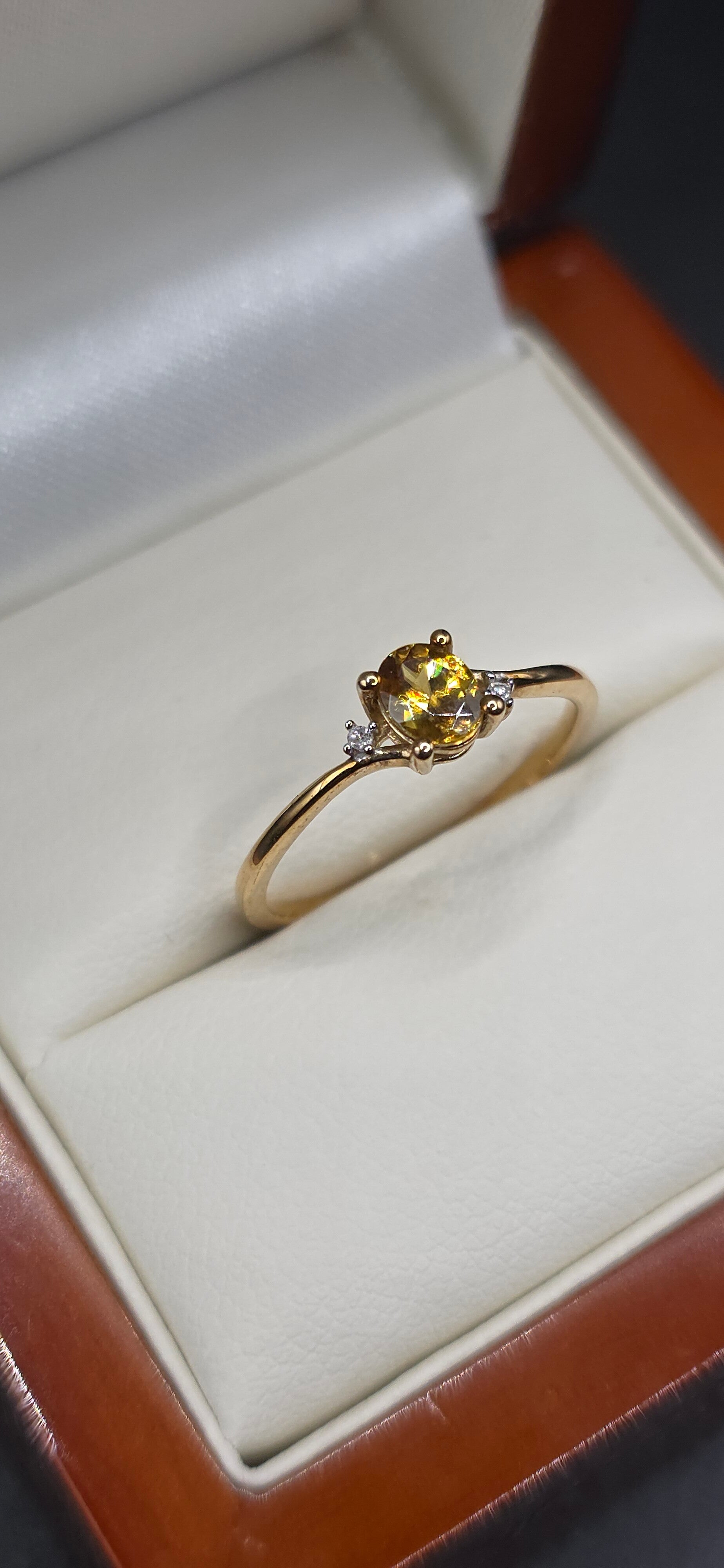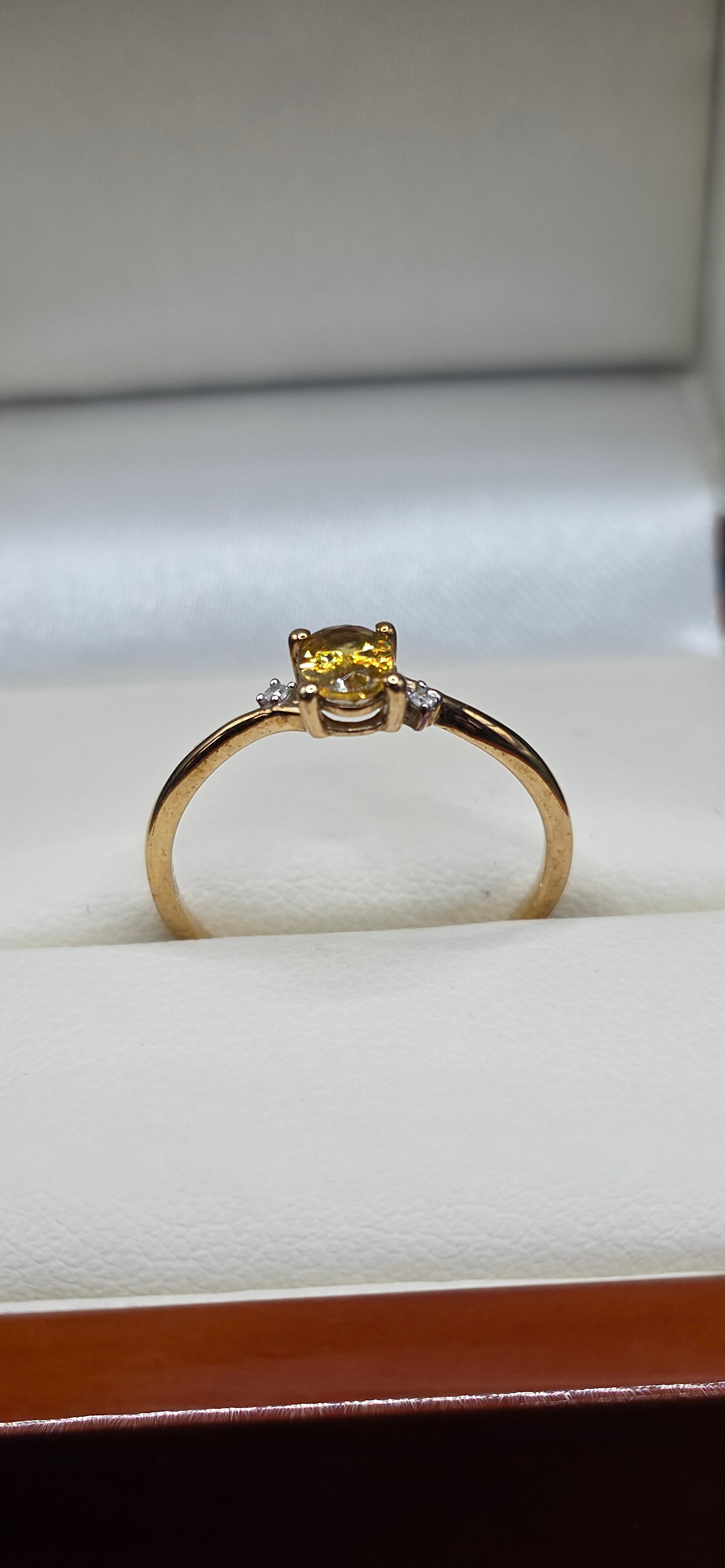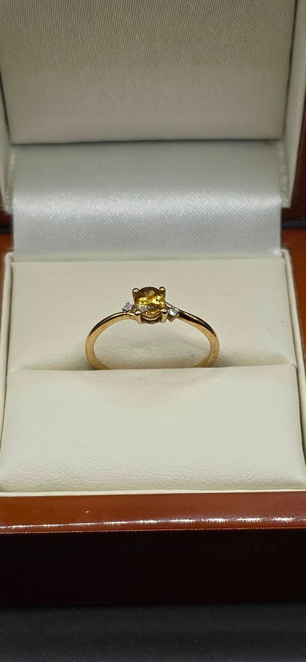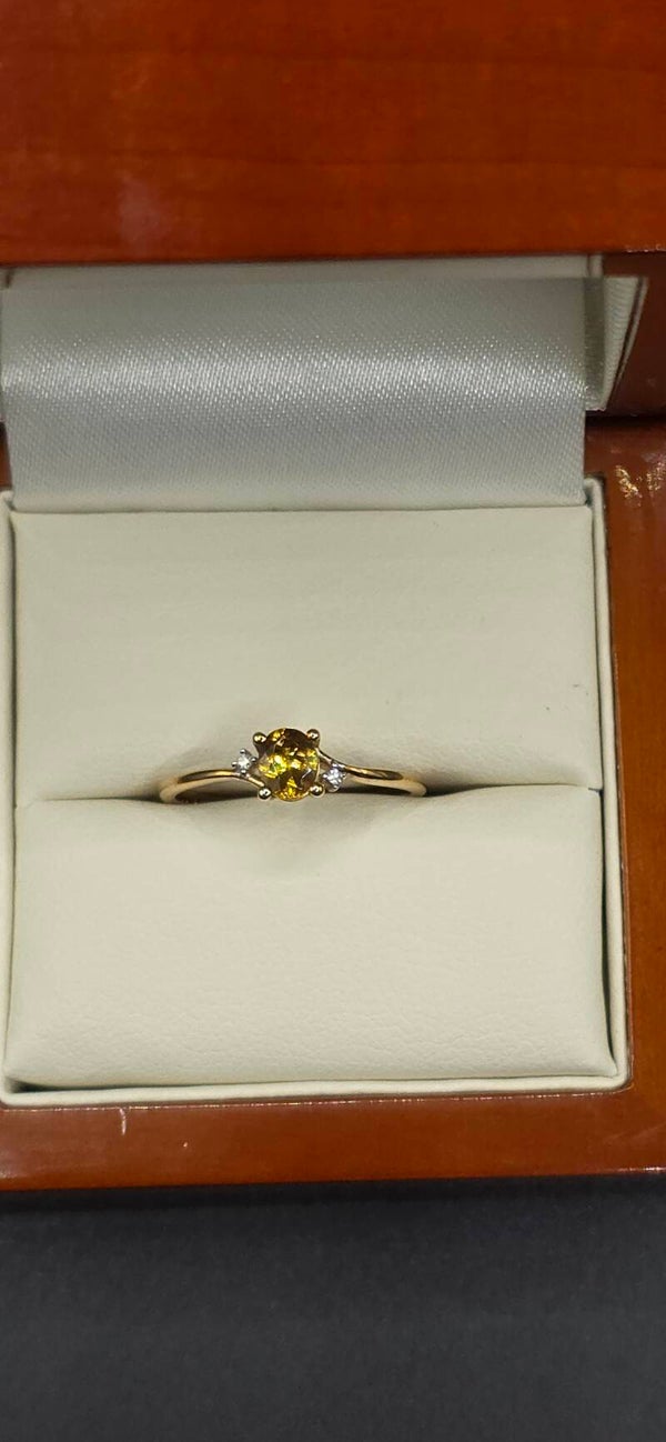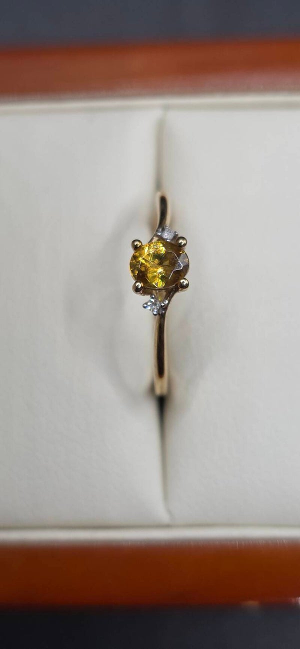 Beautiful Canary Yellow Tourmaline with 2 brilliant Cut Diamond Accents