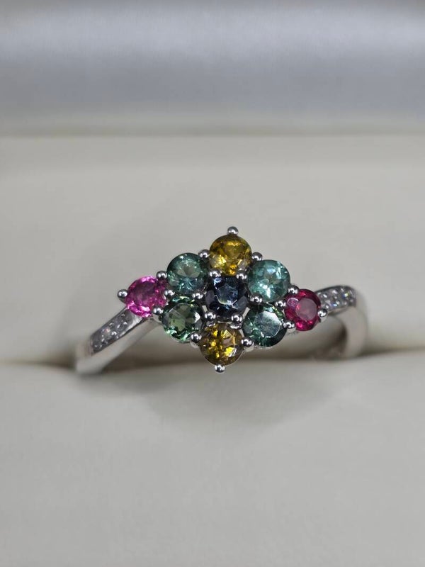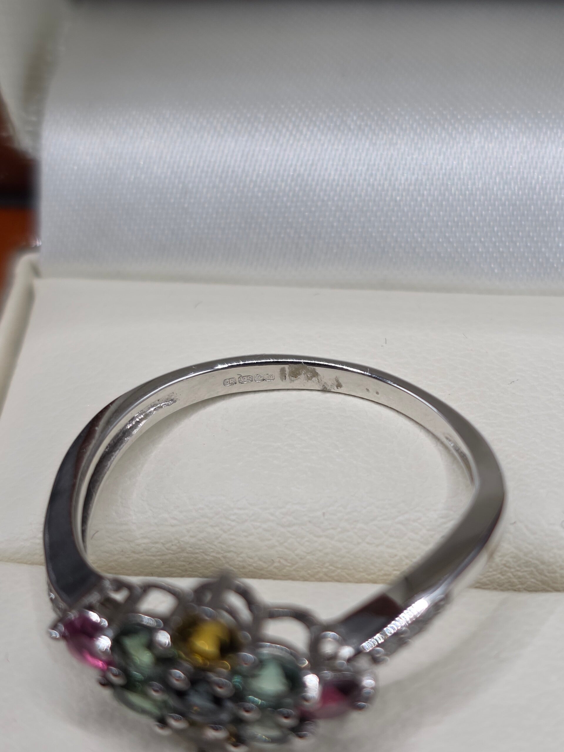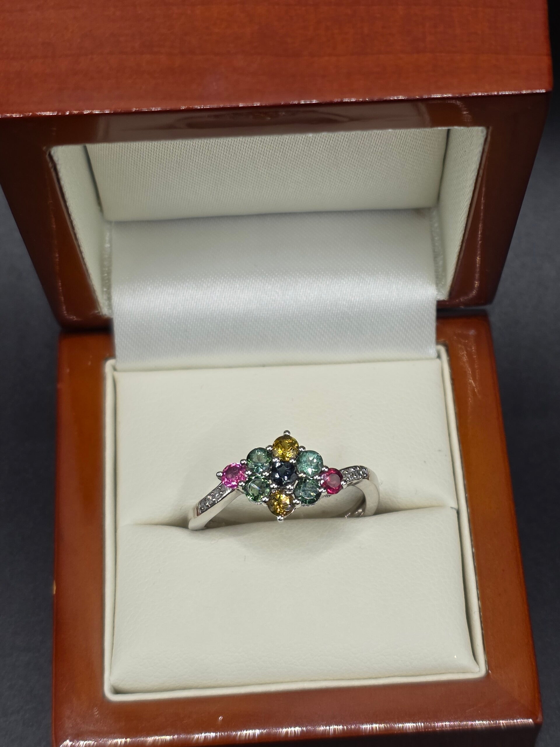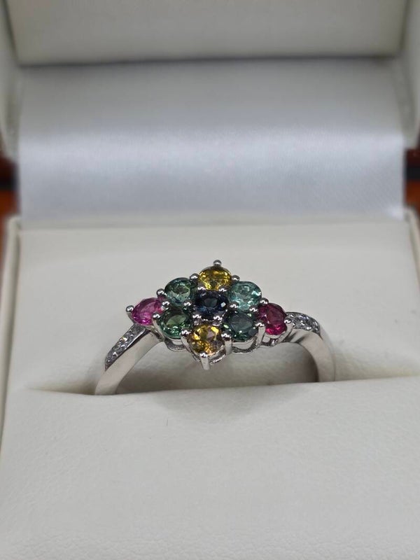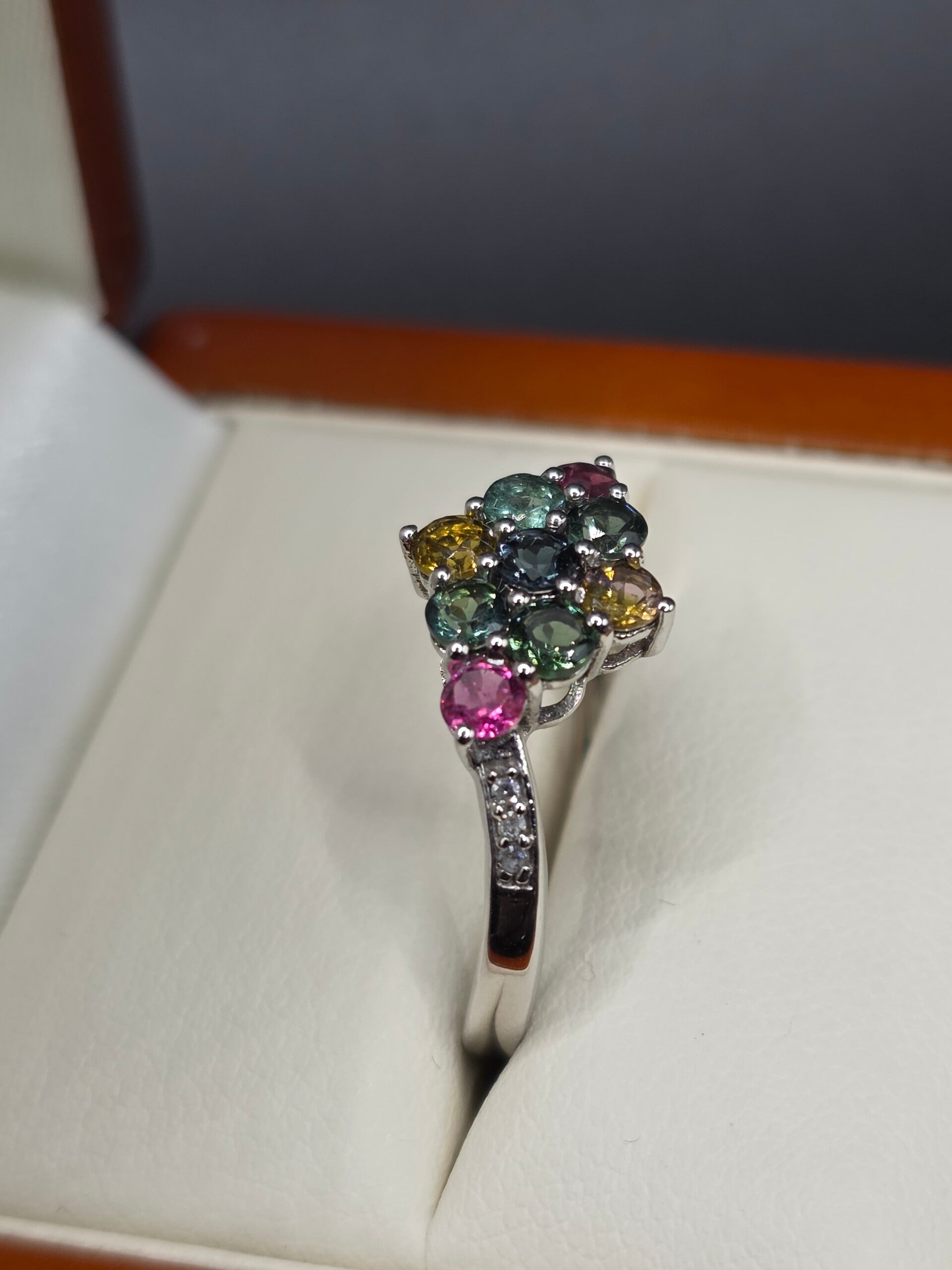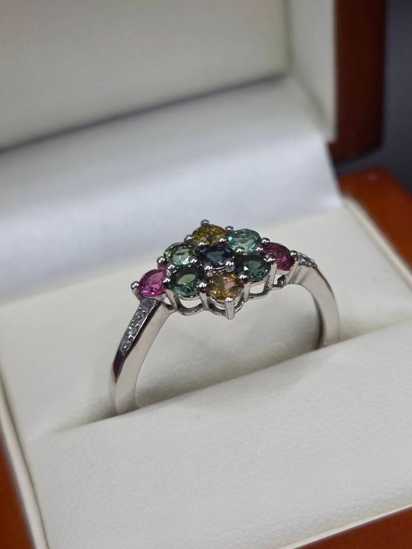 Absolutely stunning array of Multi-coloured Tourmaline Gemstones 26th Diamond accents to each Shoulder
